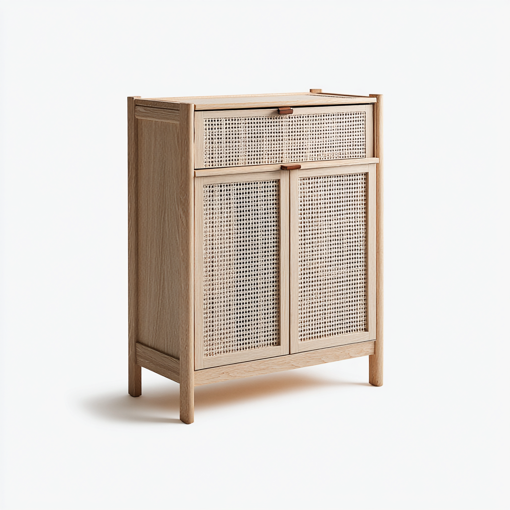 Scarpiera-legno-rattan-60x35x80 cm-legno naturale-stile naturale