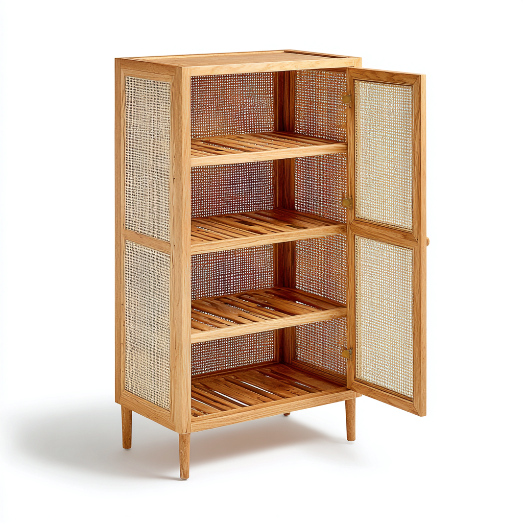 Scarpiera-legno-rattan-65x35x120 cm-legno naturale-stile naturale