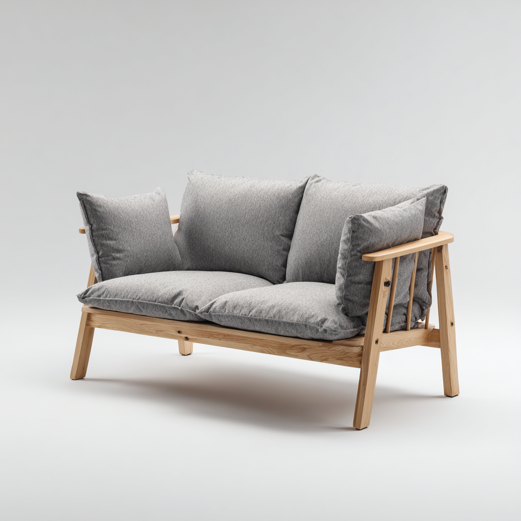Divano a due posti- Tessuto- Legno massello- 166x90x84 cm- Grigio chiaro- Stile nordico