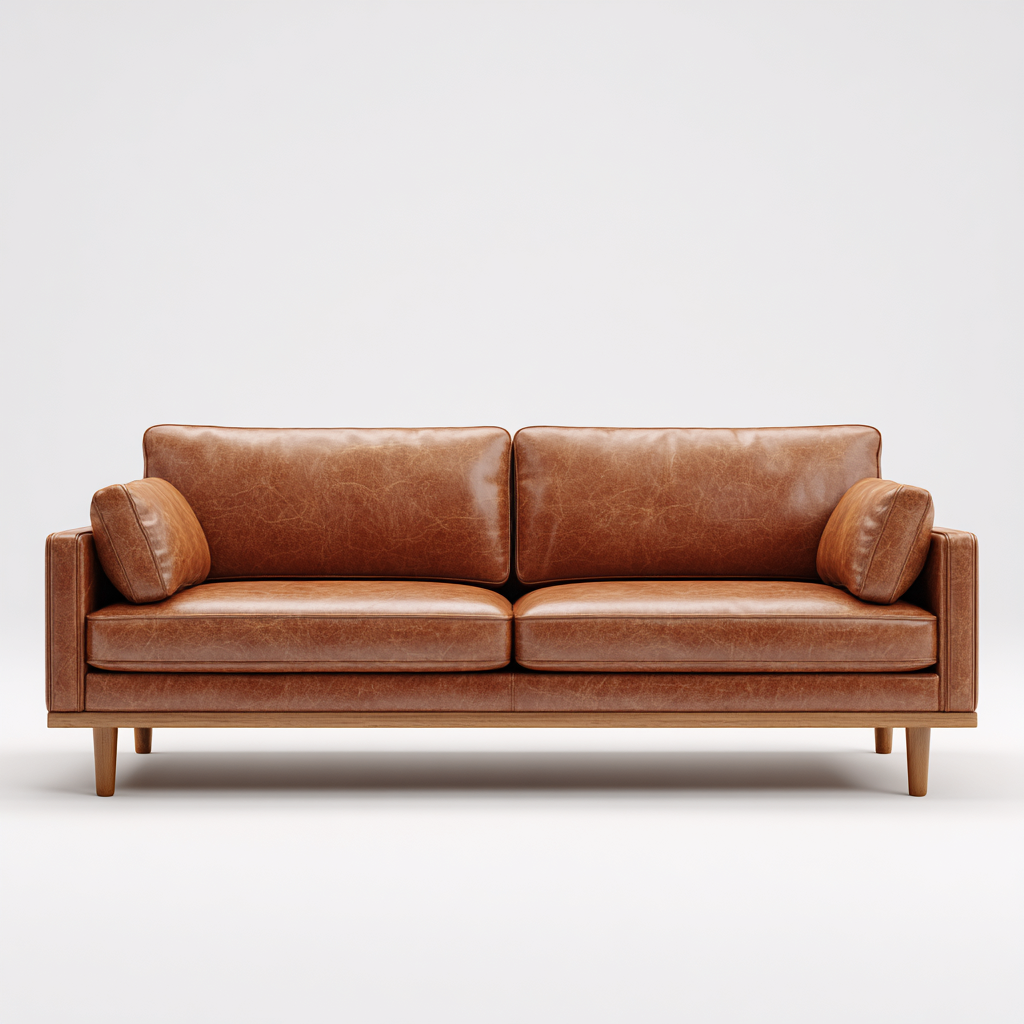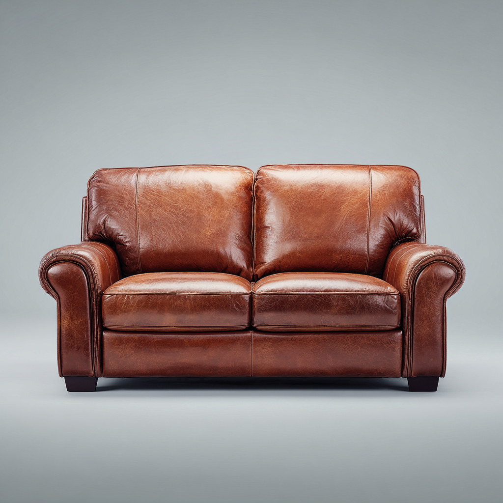 Divano a due posti- Pelle- Legno- 186x92x84 cm- Marrone chiaro- Stile moderno
