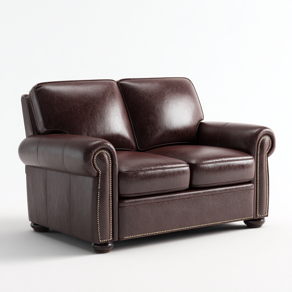 Divano a due posti- Pelle- Legno- 168x96x88 cm- Marrone scuro- Stile classico