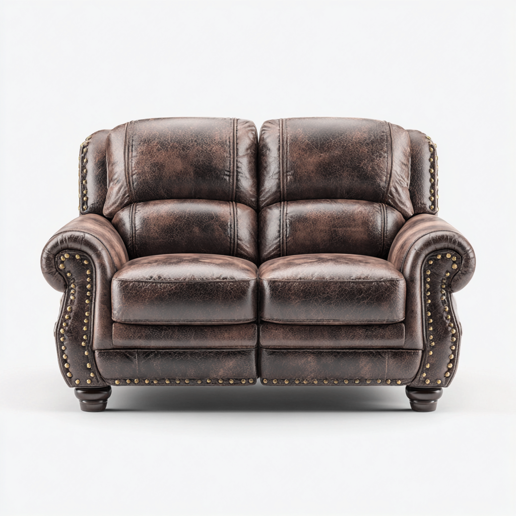 Divano a due posti- Pelle- Legno- 176x96x88 cm- Marrone- Stile classico