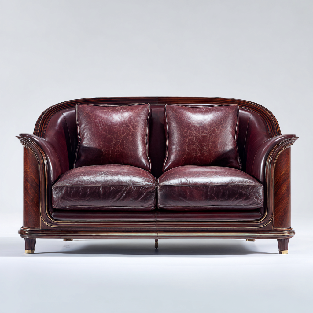 Divano a due posti- Pelle- Legno- 170x92x86 cm- Bordeaux- Stile classico