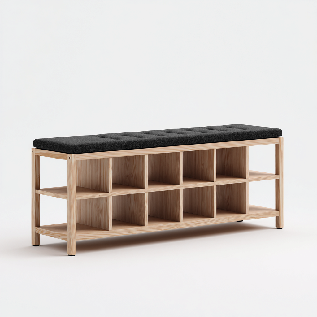 Scarpiera-panca-legno-tessuto-110x35x45 cm-legno naturale-nero-stile moderno