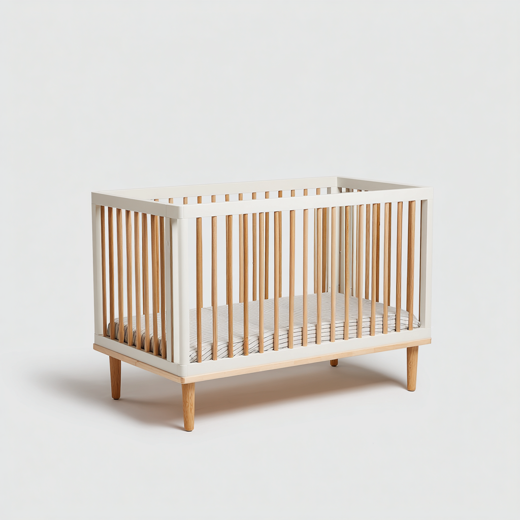 Questo lettino per bambini è pensato per la cameretta e si distingue per un design pulito con proporzioni equilibrate, adatto a creare un ambiente di riposo ordinato e luminoso.