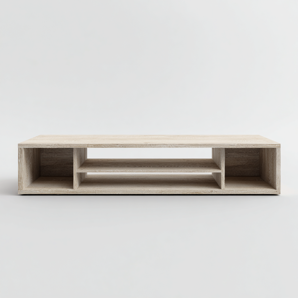 Mobile TV dal profilo basso e lineare, pensato per ambienti moderni e spazi living essenziali. Il design aperto valorizza la semplicità delle forme e consente una gestione ordinata dei dispositivi multimediali.