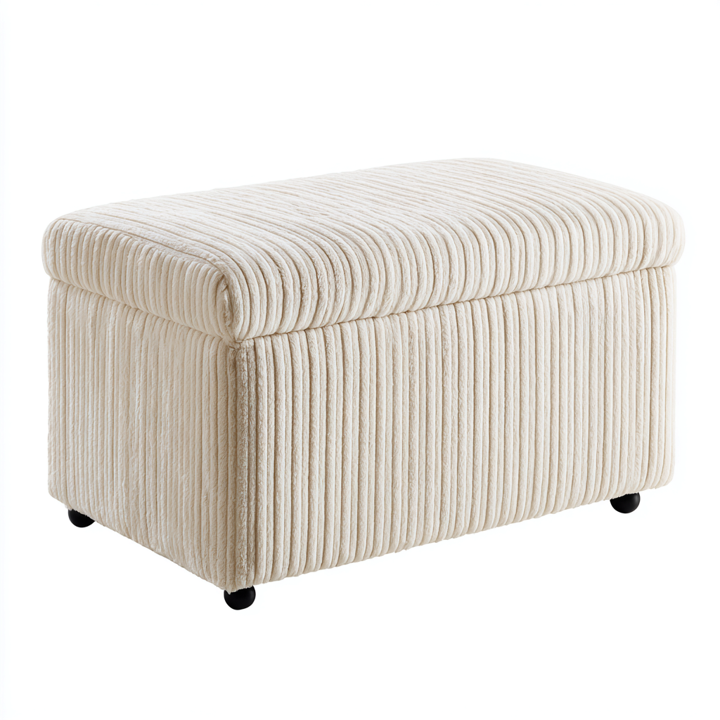 Il rivestimento è realizzato in tessuto a coste di colore beige, con una superficie morbida e uniforme al tatto. La struttura interna offre una buona solidità e stabilità per l'utilizzo quotidiano.