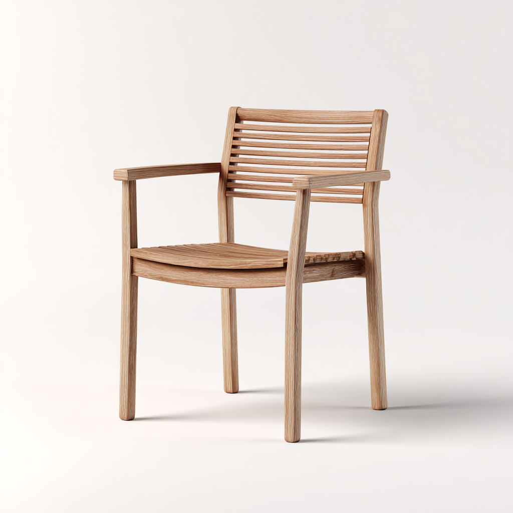 Design naturale con schienale a listelli, braccioli integrati per un appoggio confortevole, struttura leggera e facilmente abbinabile a diversi stili di arredo outdoor.