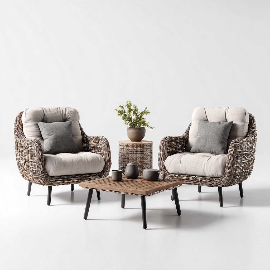 Set salotto da terrazza pensato per creare un'area relax accogliente in spazi esterni come terrazze, balconi e giardini. La composizione compatta valorizza l'ambiente con uno stile equilibrato, adatto a momenti di pausa e conversazione all'aperto.